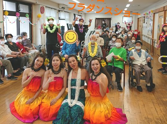 2025/09/23敬老の日イベント第一弾!! フラダンサー「プアケリホアロハ」さんを招いてフラダンスショーを開催しました!! 施設内で本格的なフラダンスが見れて利用者様の... -